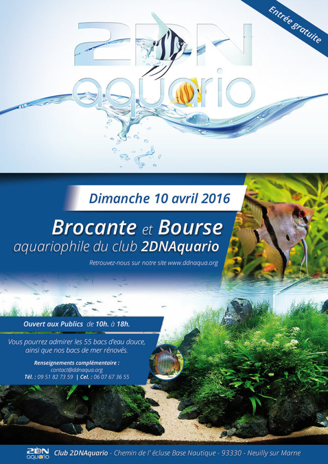 BROCANTE et BOURSE de printemps 2016 Nous serons heureux de vous recevoir le dimanche 10 avril 2016 pour notre brocante et bourse de printemps à partir de 10h00. Vous pourrez aussi admirer les 55 bacs d’eau douce et ainsi que nos bacs de mer rénovés. 10 avril 2016 de 10h. à 18h. Rappels des coordonnées…