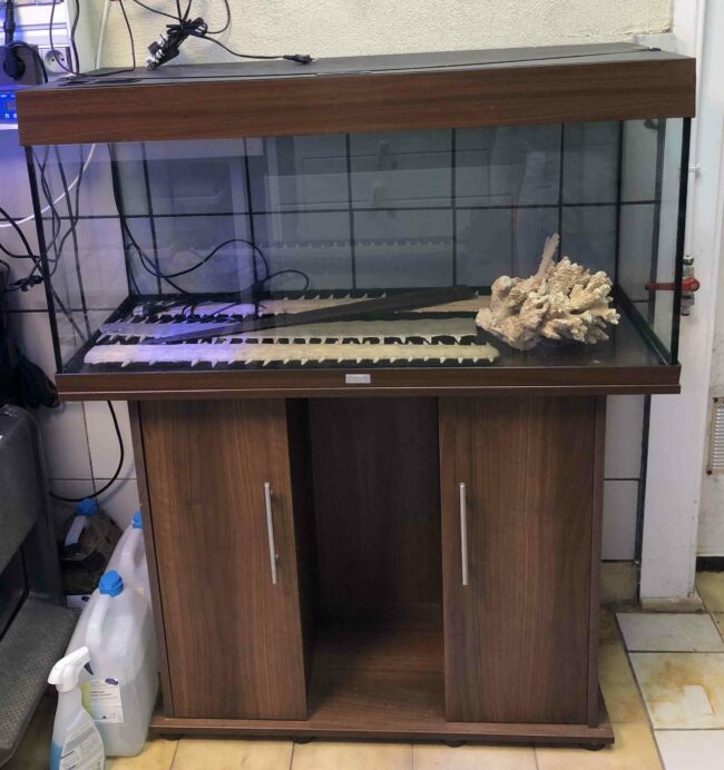 Aquarium JUWEL (VENDU) Bon état général avec éclairage (2 tubes) et meuble. Possibilité d’avoir la filtration, le chauffage et le bulleur. Taille = largeur 100cm, hauteur 50cm, profondeur 40cm. Volume 200 litres bruts.
